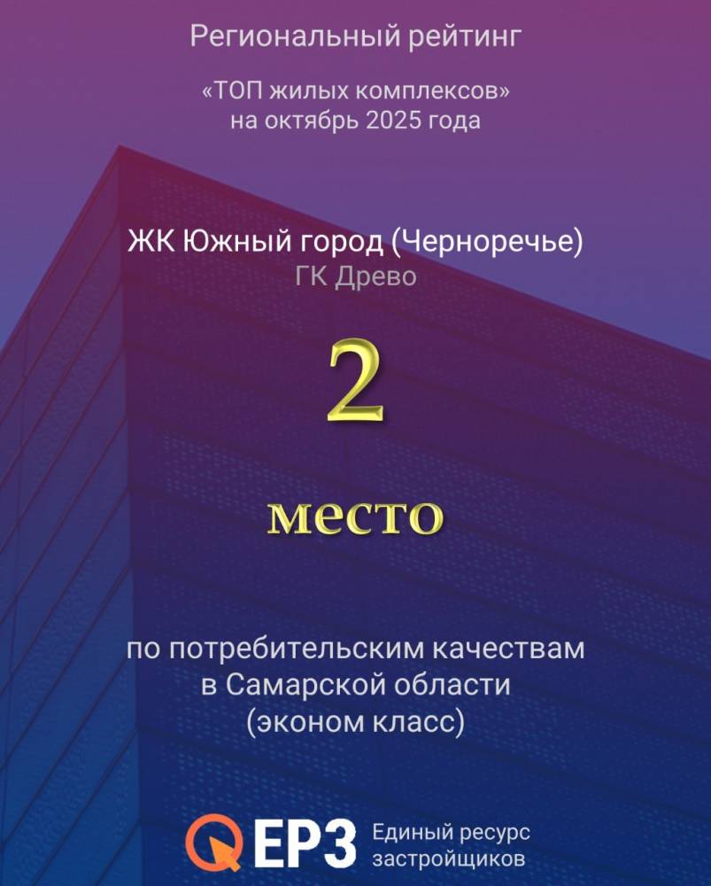 В октябре 2025 года Южный город также стал серебряным призером Регионального рейтинга «Топ жилых комплексов» по потребительским качествам в категории «Жилье эконом-класса» в Самарской области.